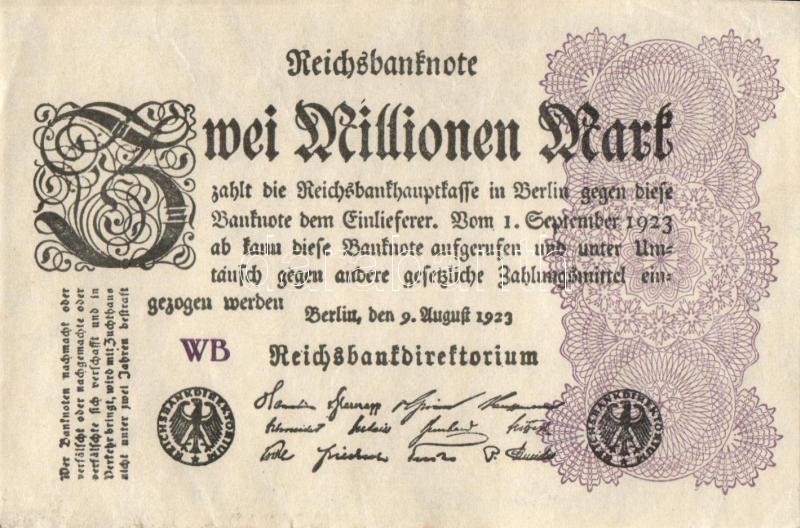 Német Birodalom / Weimari Köztársaság 1923. 2.000.000M (3x) T:I,I- https://www.darabanth.com/de/113-Fernauktion/113.0/Numismatik/~100172/Nemet-Birodalom-Weimari-Koztarsasag-1923-2000000M-3x-TI-I-~II287780