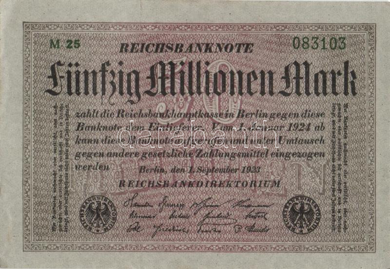 Német Birodalom / Weimari Köztársaság 1923. 50.000.000M (2x) szürke pa... https://www.darabanth.com/de/113-Fernauktion/113.0/Numismatik/~100172/Nemet-Birodalom-Weimari-Koztarsasag-1923-50000000M-2x-szurke-papiron-egymas-utani-so~II287686