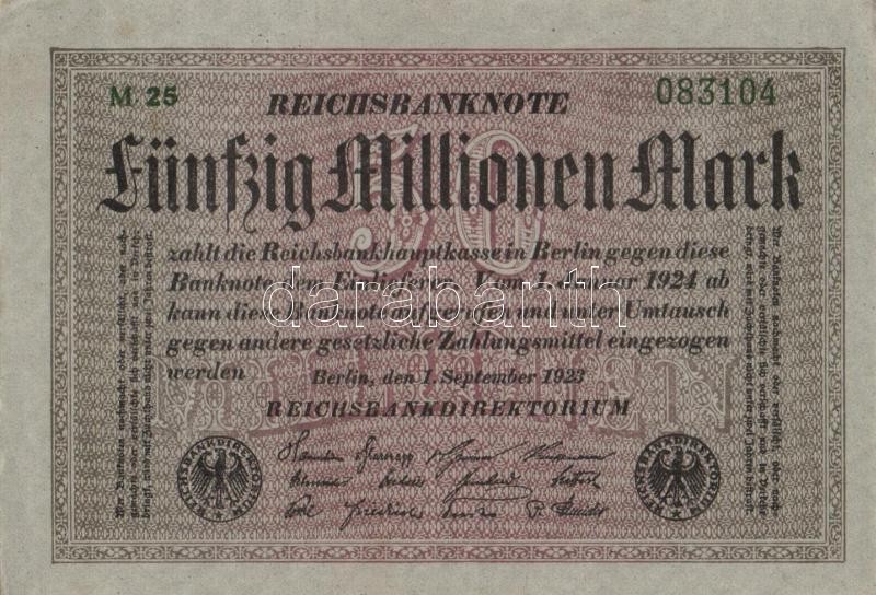 Beschreibung: Német Birodalom / Weimari Köztársaság 1923. 50.000.000M (2x) szürke papíron, egymás utáni sorszámokkal T:I,I-