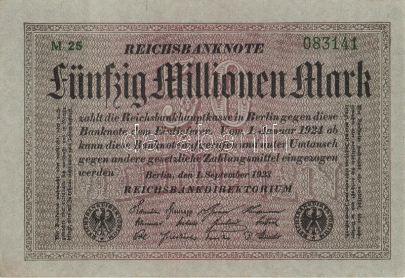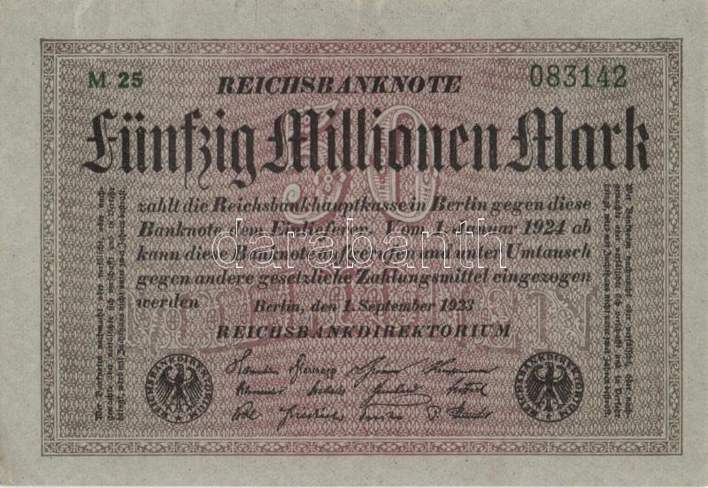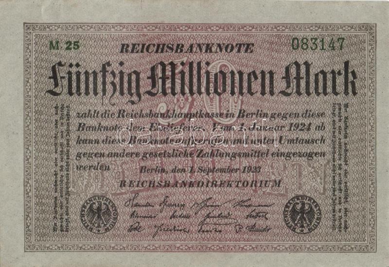 Német Birodalom / Weimari Köztársaság 1923. 50.000.000M (4x) szürke pa... https://www.darabanth.com/de/113-Fernauktion/113.0/Numismatik/~100172/Nemet-Birodalom-Weimari-Koztarsasag-1923-50000000M-4x-szurke-papiron-kis-ugrasu-sors~II287692