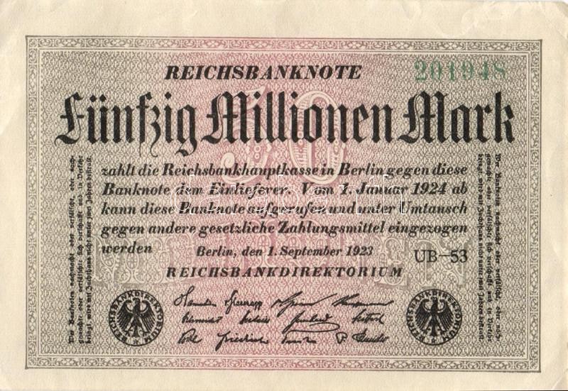 Német Birodalom / Weimari Köztársaság 1923. 50.000.000M (5x) fehér pap... https://www.darabanth.com/de/113-Fernauktion/113.0/Numismatik/~100172/Nemet-Birodalom-Weimari-Koztarsasag-1923-50000000M-5x-feher-papiron-kozte-egymas-utC3~II287727