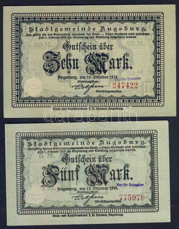Beschreibung: Német Birodalom/Császárság/Augsburg 1918.10.15. 5M, 10M hivatalos érvénytelenítéssel T:I