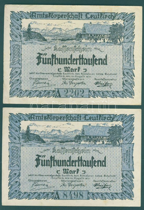 Német Birodalom/Weimari Köztársaság/Leutkirch 1923.8.20. 500.000M "A" ... https://www.darabanth.com/de/113-Fernauktion/113.0/Numismatik/~100172/Nemet-BirodalomWeimari-KoztarsasagLeutkirch-1923820-500000M-A-4x-TII~II285843