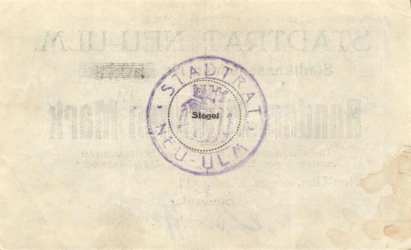 Német Birodalom/Weimari Köztársaság/Neu-Ulm 1923.8.22. 100.000.000M T:... https://www.darabanth.com/de/113-Fernauktion/113.0/Numismatik/~100172/Nemet-BirodalomWeimari-KoztarsasagNeu-Ulm-1923822-100000000M-TII-~II249828