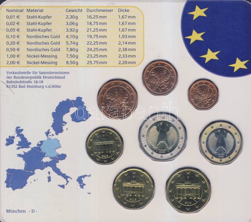 Beschreibung: Németország 2002D 1c-2€ 8klf db, szettben T:1 Sérült!
