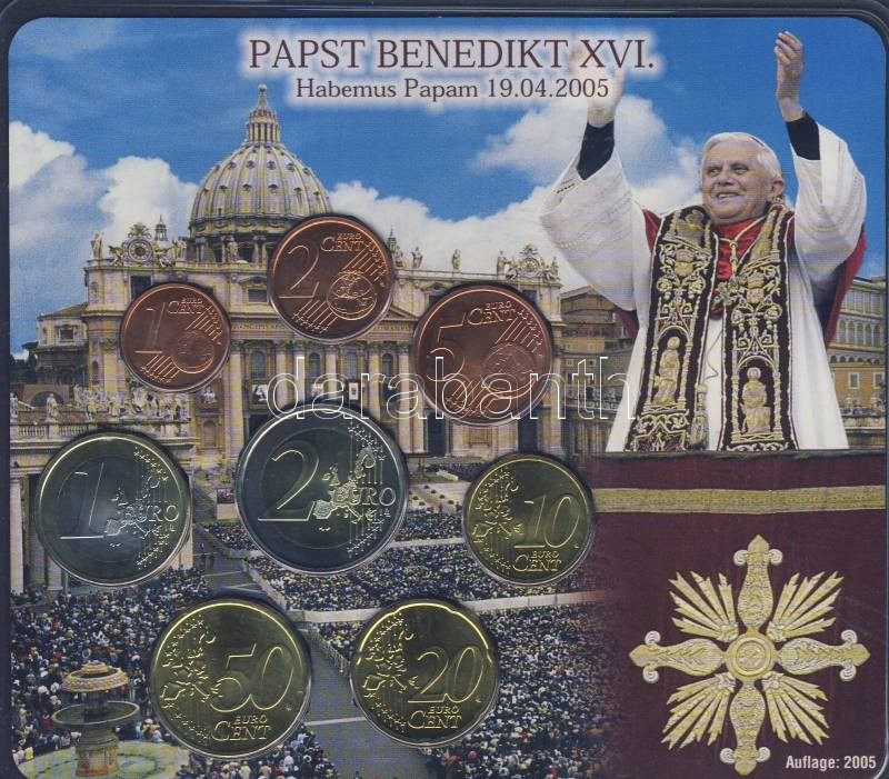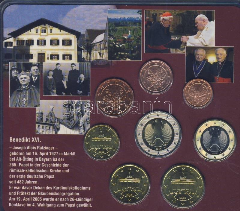 Németország 2005D 1c-2€ 8klf db, szettben "XVI.Benedek pápa" T:1 https://www.darabanth.com/de/113-Fernauktion/113.0/Numismatik/~100172/Nemetorszag-2005D-1c-2238364-8klf-db-szettben-XVIBenedek-papa-T1~II290461