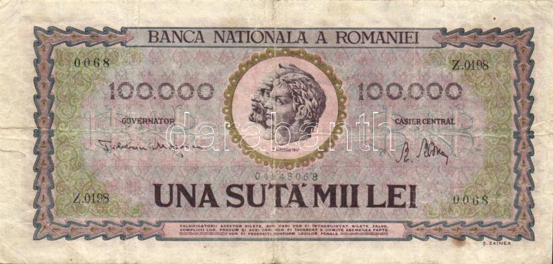 Beschreibung: Románia 1947. 100.000L T:III