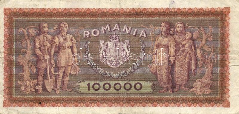 Románia 1947. 100.000L T:III https://www.darabanth.com/de/113-Fernauktion/113.0/Numismatik/~100173/Romania-1947-100000L-TIII~II289141