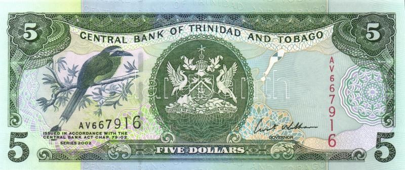Trinidad & Tobago 2002. 1$ (2x), 5$, 10$, 20$ T:I https://www.darabanth.com/de/113-Fernauktion/113.0/Numismatik/~100173/Trinidad-Tobago-2002-1USD-2x-5USD-10USD-20USD-TI~II291129