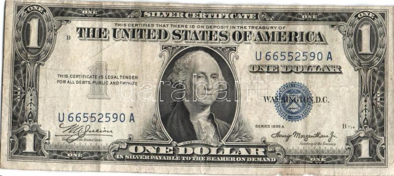 USA/Silver Certificate 1935A 1$ T:III- https://www.darabanth.com/de/113-Fernauktion/113.0/Numismatik/~100173/USASilver-Certificate-1935A-1USD-TIII-~II289372