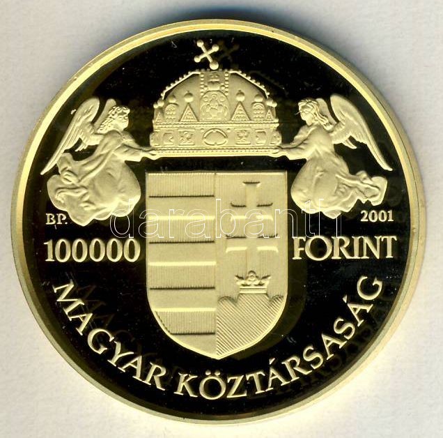 2001. 100.000Ft Au 31,104g "Államalapító Szent István" T:PP Csak 3000d... https://www.darabanth.com/de/113-Fernauktion/113.0/Numismatik/~100182/2001-100000Ft-Au-31-104g-Allamalapito-Szent-Istvan-TPP-Csak-3000db-Diszdobozban-tanusi~II291419