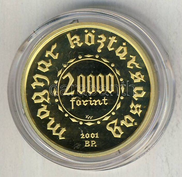2001. 20.000Ft Au 6,982g "Ezeréves a magyar pénzverés" T:PP Csak 3000d... https://www.darabanth.com/de/113-Fernauktion/113.0/Numismatik/~100182/2001-20000Ft-Au-6-982g-Ezereves-a-magyar-penzveres-TPP-Csak-3000db~II291421