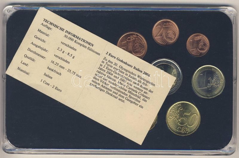 Beschreibung: Olaszország 2002-2006. 1c-2€ 8klf db, benne 2€ alkalmi veret "Téli olimpia" kereskedői szettben T:1 Limitált példányszám!