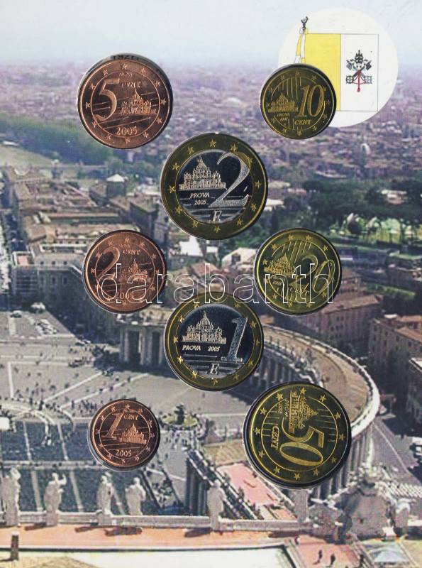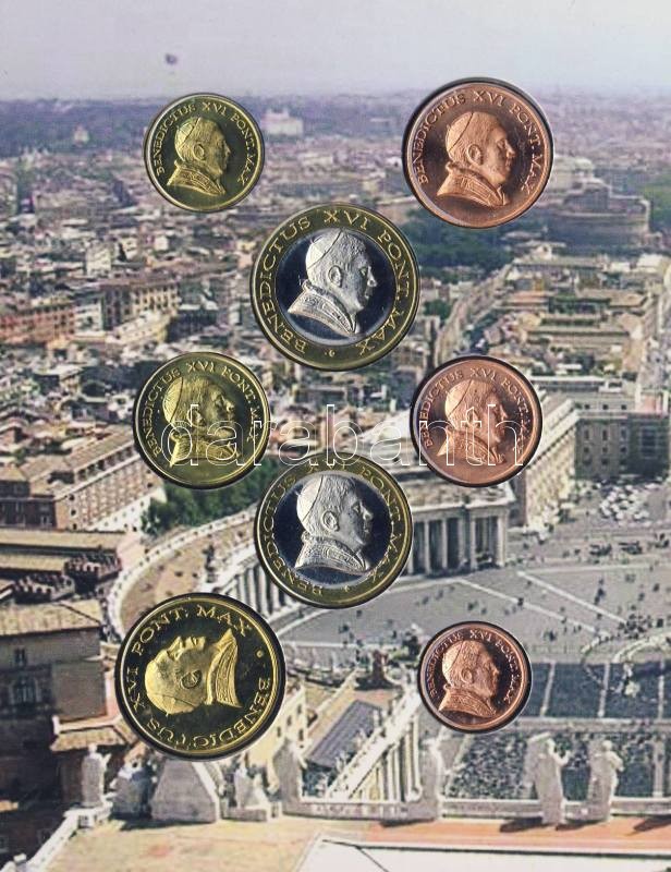 Vatikán 2005. 1c,2c,5c,10c,20c,50c,1€,2€ "XVI. Benedek pápa" próbaveretek, szettben, díszkiadásban T:BU