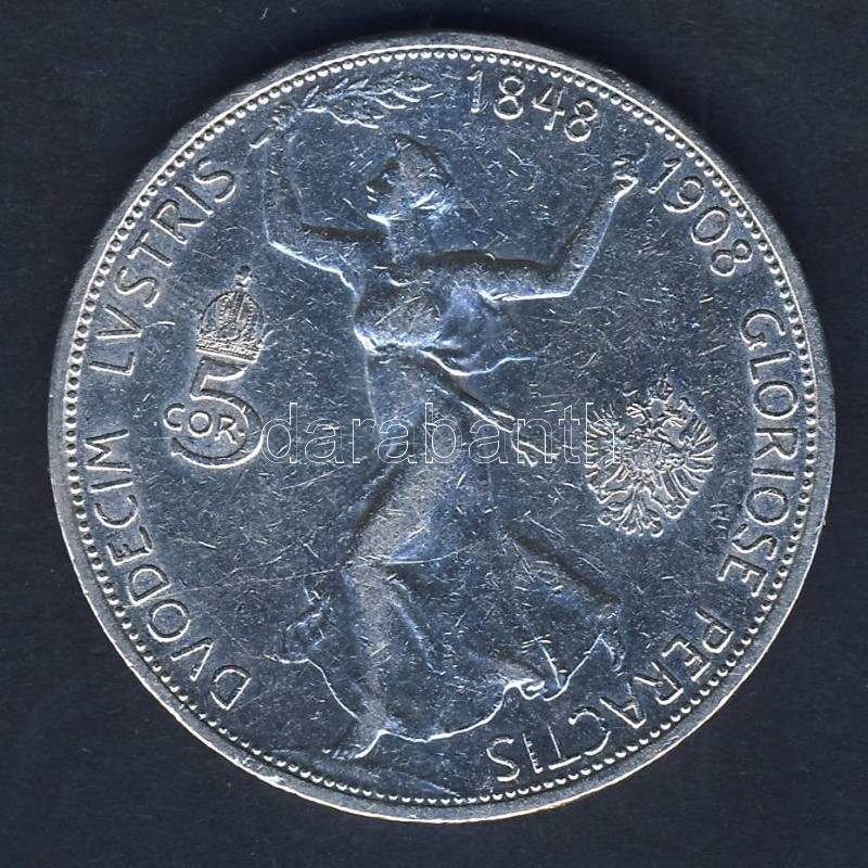 Ausztria 1908. 5K Ag "Jubileum" T:3 ph. https://www.darabanth.com/de/113-Fernauktion/113.0/Numismatik/~100184/Ausztria-1908-5K-Ag-Jubileum-T3-ph~II291760