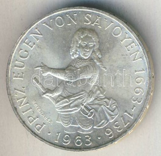 Ausztria 1963. 25Sch Ag "Prinz Eugen von Savoyen" T:2 https://www.darabanth.com/de/113-Fernauktion/113.0/Numismatik/~100184/Ausztria-1963-25Sch-Ag-Prinz-Eugen-von-Savoyen-T2~II290787