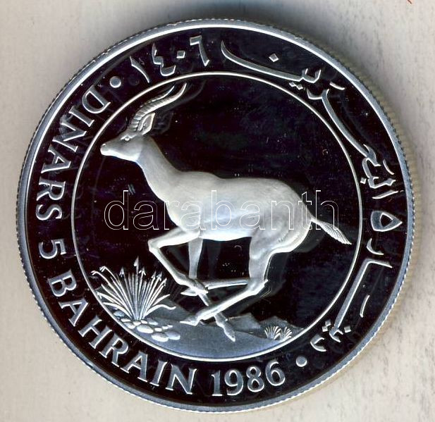Bahrain 1986. 5D Ag "WWF - Gazella" T:PP https://www.darabanth.com/de/113-Fernauktion/113.0/Numismatik/~100184/Bahrain-1986-5D-Ag-WWF--Gazella-TPP~II290557