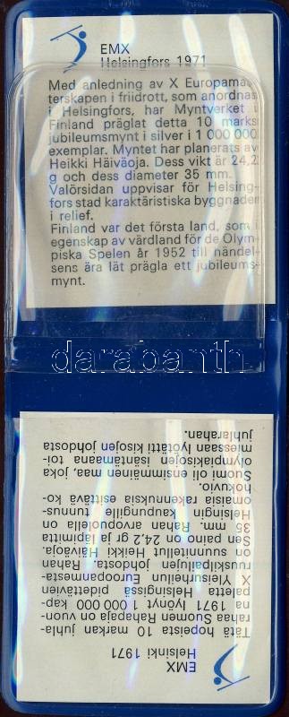 Beschreibung: Finnország 1971. 10M Ag "Atlétikai EB" T:BU Eredeti tokban, tanúsítvánnyal!