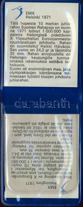 Beschreibung: Finnország 1971. 10M Ag "Atlétikai EB" T:BU Eredeti tokban, tanúsítvánnyal!