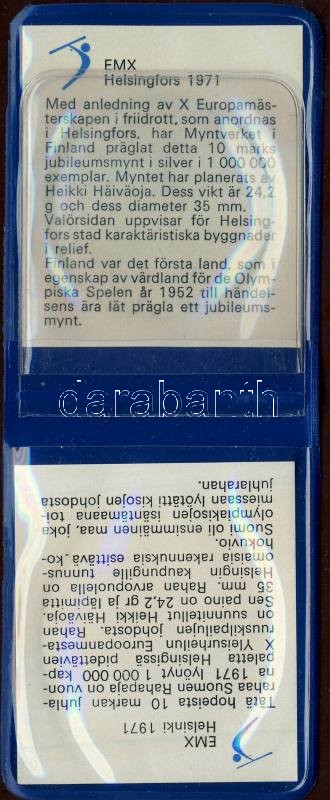 Beschreibung: Finnország 1971. 10M Ag "Atlétikai EB" T:BU Eredeti tokban, tanúsítvánnyal!
