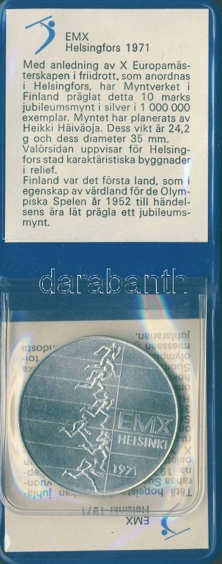 Beschreibung: Finnország 1971. 10M Ag "Atlétikai EB" T:BU Eredeti tokban, tanúsítvánnyal!