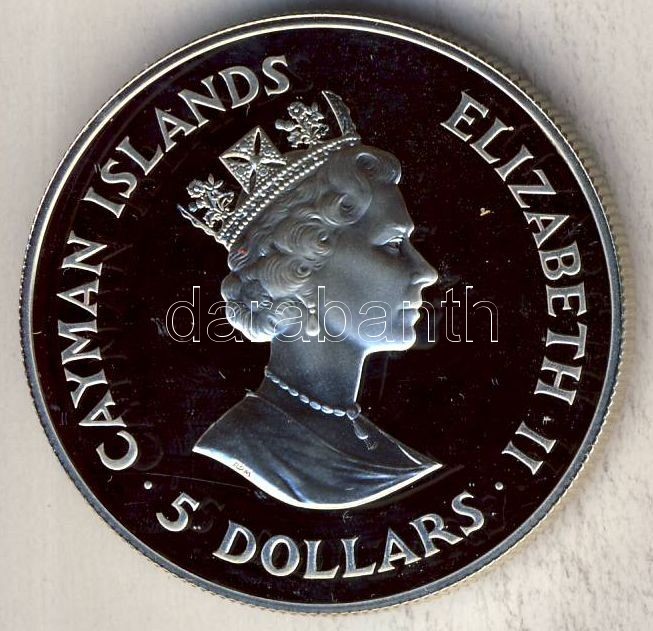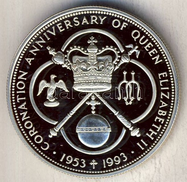 Kajmán-szigetek 1993. 5$ Ag "II. Erzsébet koronázási évfordulója" T:PP https://www.darabanth.com/de/113-Fernauktion/113.0/Numismatik/~100184/Kajman-szigetek-1993-5USD-Ag-II-Erzsebet-koronazasi-evforduloja-TPP~II290941