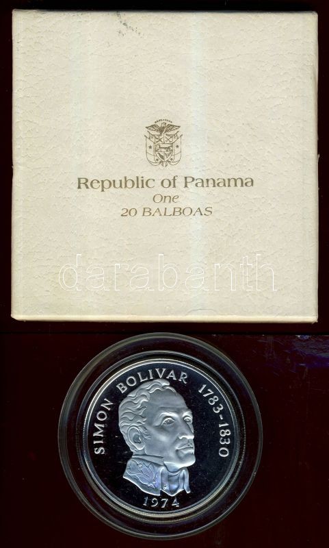 Panama 1974. 20B Ag "Simon Bolivar" 129,59g! T:PP Eredeti díszdobozban... https://www.darabanth.com/de/113-Fernauktion/113.0/Numismatik/~100184/Panama-1974-20B-Ag-Simon-Bolivar-129-59g-TPP-Eredeti-diszdobozban-tanusitvannyal~II291029