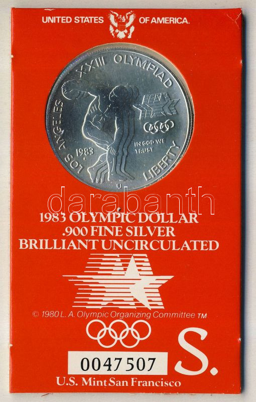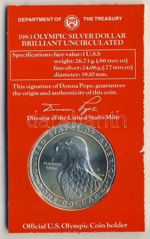 USA 1983S 1$ Ag "Olimpiai játékok" eredeti csomagolásban T:BU https://www.darabanth.com/de/113-Fernauktion/113.0/Numismatik/~100184/USA-1983S-1USD-Ag-Olimpiai-jatekok-eredeti-csomagolasban-TBU~II290511