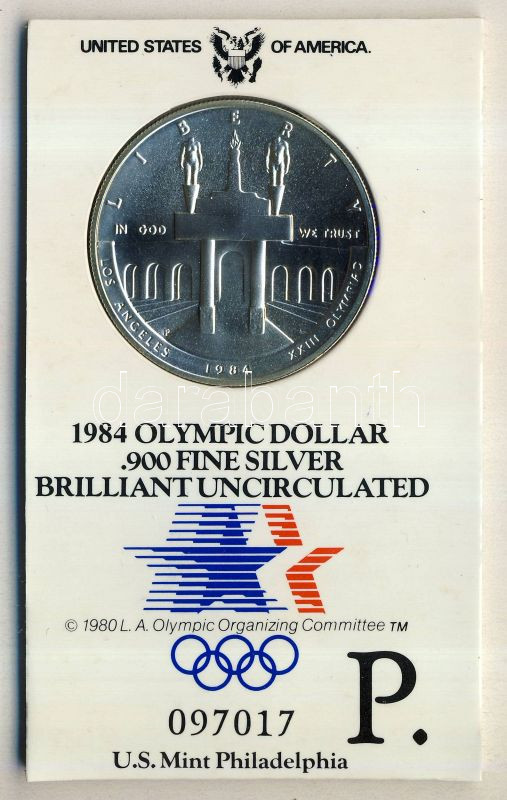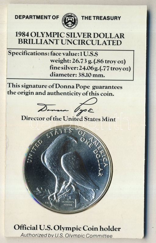 USA 1984P 1$ Ag "Olimpiai játékok" eredeti csomagolásban T:BU https://www.darabanth.com/de/113-Fernauktion/113.0/Numismatik/~100184/USA-1984P-1USD-Ag-Olimpiai-jatekok-eredeti-csomagolasban-TBU~II290507