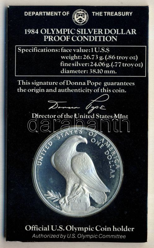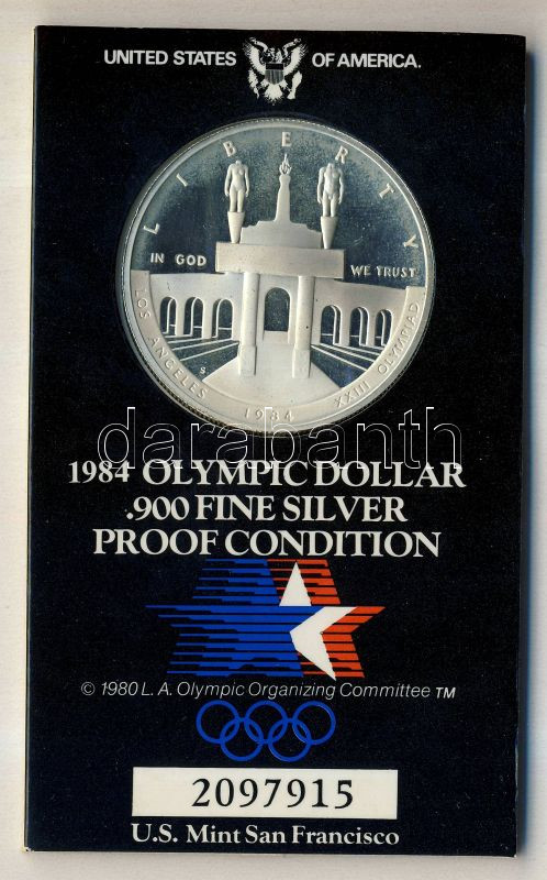 USA 1984S 1$ Ag "Olimpiai játékok" eredeti csomagolásban T:PP https://www.darabanth.com/de/113-Fernauktion/113.0/Numismatik/~100184/USA-1984S-1USD-Ag-Olimpiai-jatekok-eredeti-csomagolasban-TPP~II290513