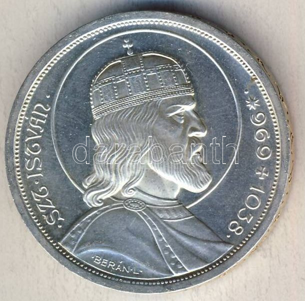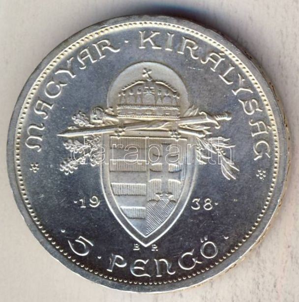 1938. 5P Ag "Szt István" T:1/2+ https://www.darabanth.com/de/113-Fernauktion/113.0/Numismatik/~100185/1938-5P-Ag-Szt-Istvan-T12plus~II290847