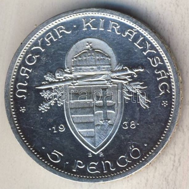 1938. 5P Ag "Szt István" T:1/2+ https://www.darabanth.com/de/113-Fernauktion/113.0/Numismatik/~100185/1938-5P-Ag-Szt-Istvan-T12plus~II290851