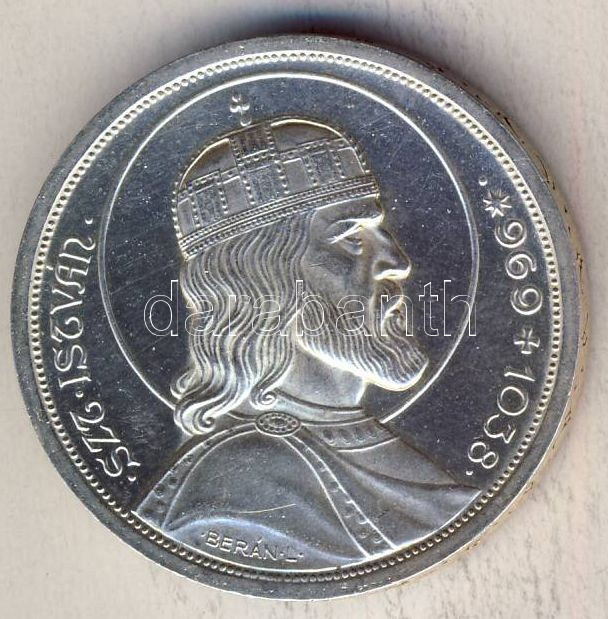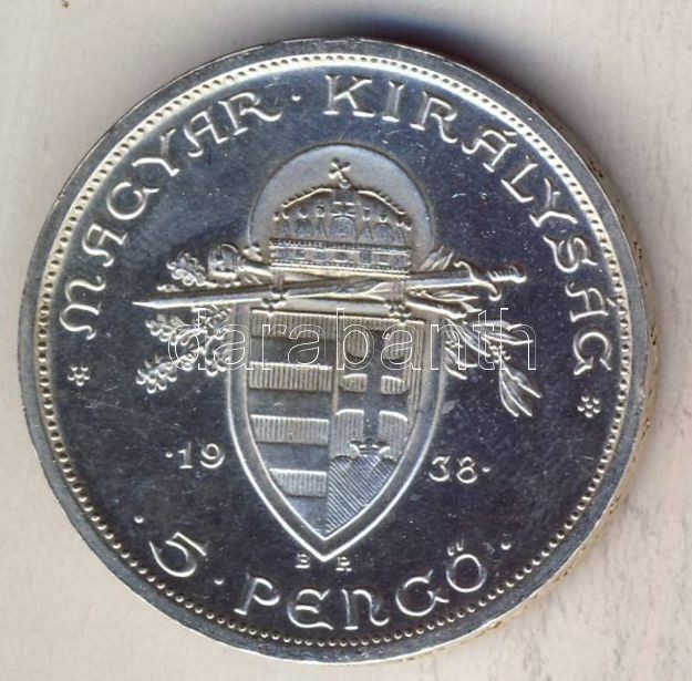 1938. 5P Ag "Szt István" T:1/2+ https://www.darabanth.com/de/113-Fernauktion/113.0/Numismatik/~100185/1938-5P-Ag-Szt-Istvan-T12plus~II290853