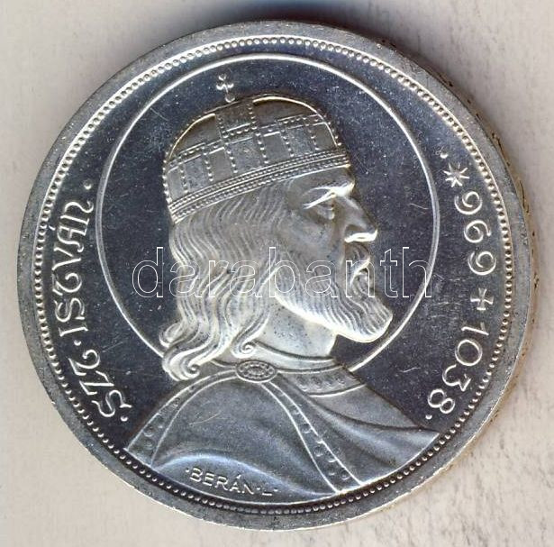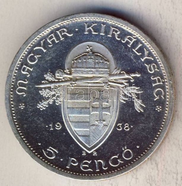 1938. 5P Ag "Szt István" T:1/2+ https://www.darabanth.com/de/113-Fernauktion/113.0/Numismatik/~100185/1938-5P-Ag-Szt-Istvan-T12plus~II290857