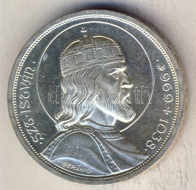 1938. 5P Ag "Szt István" T:1/2+ https://www.darabanth.com/de/113-Fernauktion/113.0/Numismatik/~100185/1938-5P-Ag-Szt-Istvan-T12plus~II290859