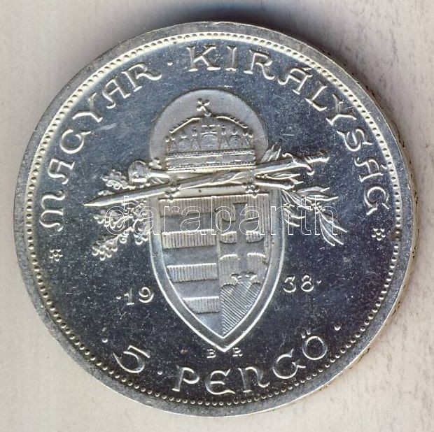 1938. 5P Ag "Szt. István" T:2 https://www.darabanth.com/de/113-Fernauktion/113.0/Numismatik/~100185/1938-5P-Ag-Szt-Istvan-T2~II290900