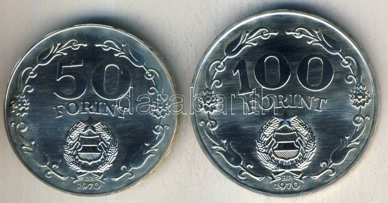 1970. 50Ft Ag + 100Ft Ag "Felszabadulás" pár T:BU https://www.darabanth.com/de/113-Fernauktion/113.0/Numismatik/~100185/1970-50Ft-Ag-plus-100Ft-Ag-Felszabadulas-par-TBU~II291433