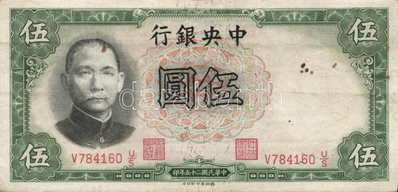 Kína 1910-40-es évek 5db klf bankjegy T:vegyes https://www.darabanth.com/de/113-Fernauktion/113.0/Numismatik/~100190/Kina-1910-40-es-evek-5db-klf-bankjegy-Tvegyes~II292190
