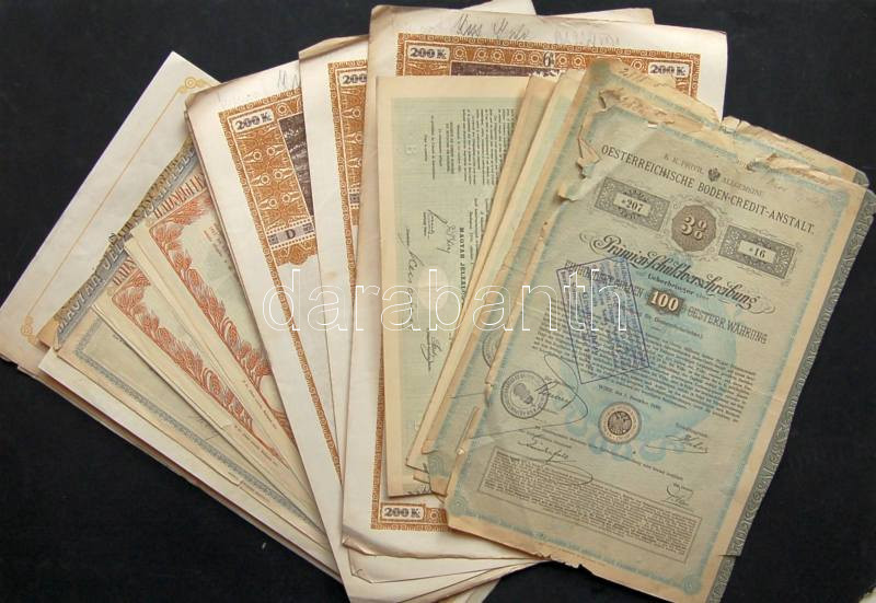 Kis hagyaték tétel, benne részvények, nyeremény kötvények, kötelezvények, sorsjegyek 1880-1926-ig 29db magyar + 2db osztrák, benne sok egymásutáni sorszám!