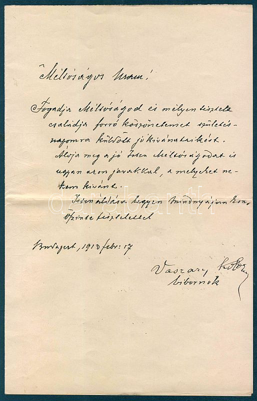 1913 Vaszary Kolos hercegprímás kéziratos levele https://www.darabanth.com/de/114-Fernauktion/114.0/Andere-Sammelgebiete/~374/1913-Vaszary-Kolos-hercegprimas-keziratos-levele~II293117