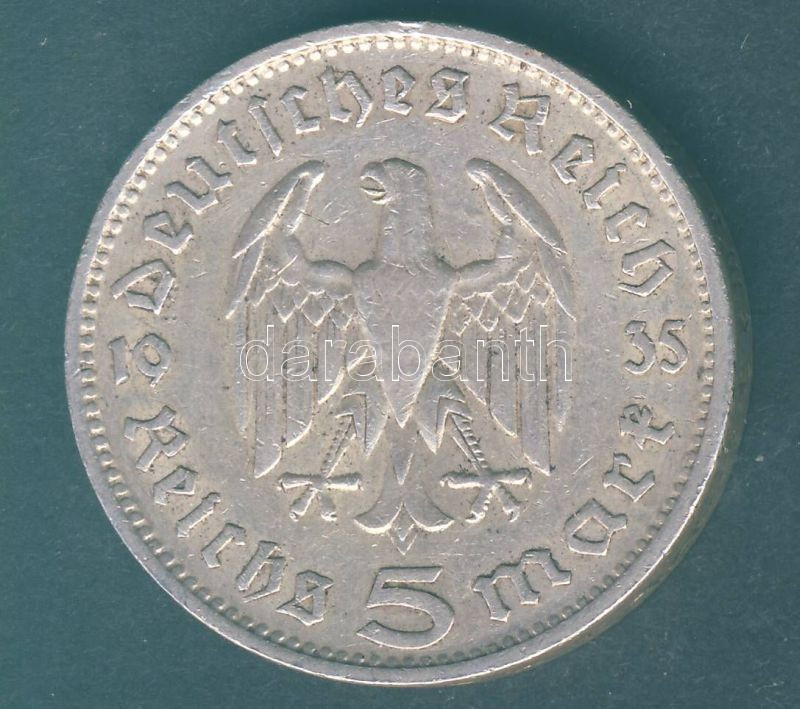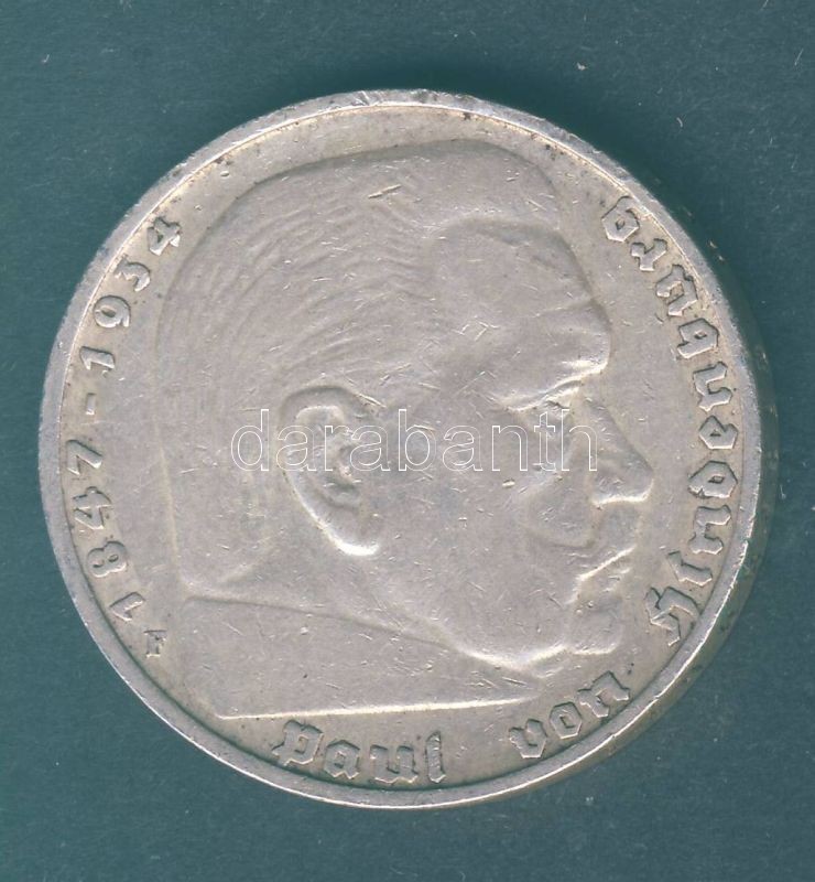 Német 3. Birodalom 1935F 5M Ag "Hindenburg" T:3 ph. https://www.darabanth.com/de/114-Fernauktion/114.0/Numismatik/~411/Nemet-3-Birodalom-1935F-5M-Ag-Hindenburg-T3-ph~II294752