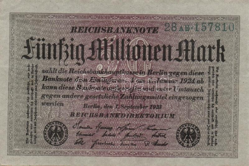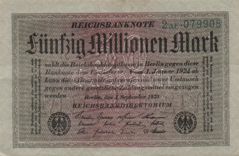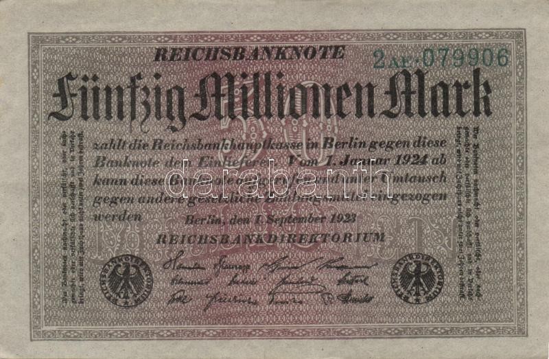 Német Birodalom / Weimari Köztársaság 1923. 50.000.000M (5x) szürke pa... https://www.darabanth.com/de/114-Fernauktion/114.0/Numismatik/~411/Nemet-Birodalom-Weimari-Koztarsasag-1923-50000000M-5x-szurke-papiron-kozte-egymas-ut~II292458