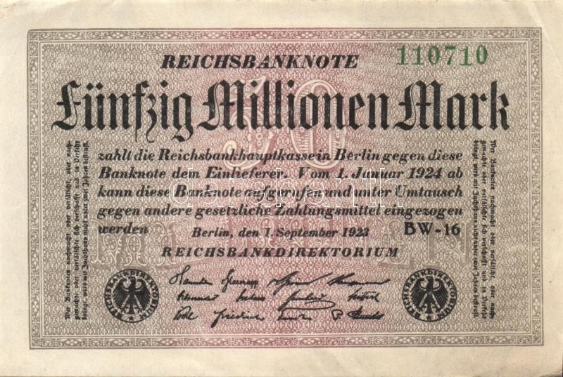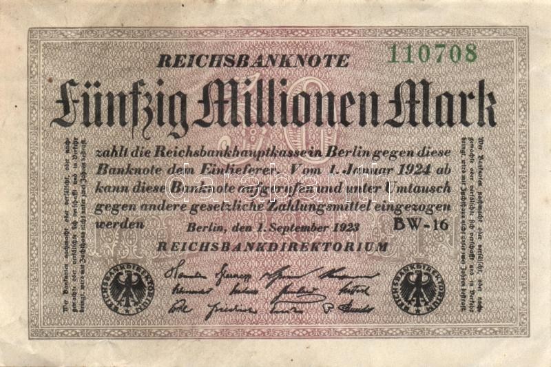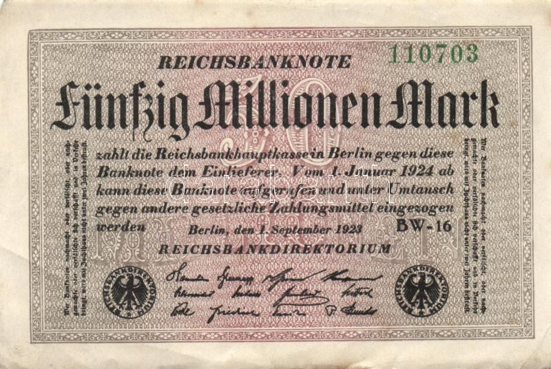 Német Birodalom / Weimari Köztársaság 1923. 50.000.000M (6x) kis ugrás... https://www.darabanth.com/de/114-Fernauktion/114.0/Numismatik/~411/Nemet-Birodalom-Weimari-Koztarsasag-1923-50000000M-6x-kis-ugrasu-sorszamokkal-TII-II-~II292406