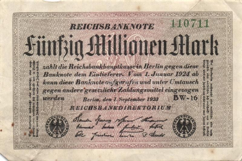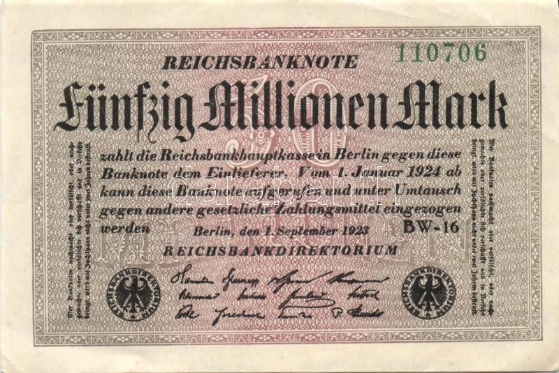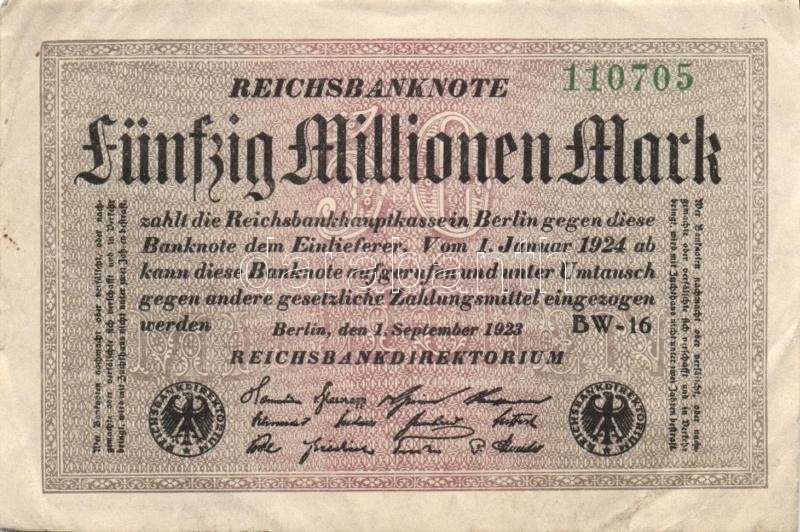 Beschreibung: Német Birodalom / Weimari Köztársaság 1923. 50.000.000M (6x) kis ugrású sorszámokkal T:II,II-