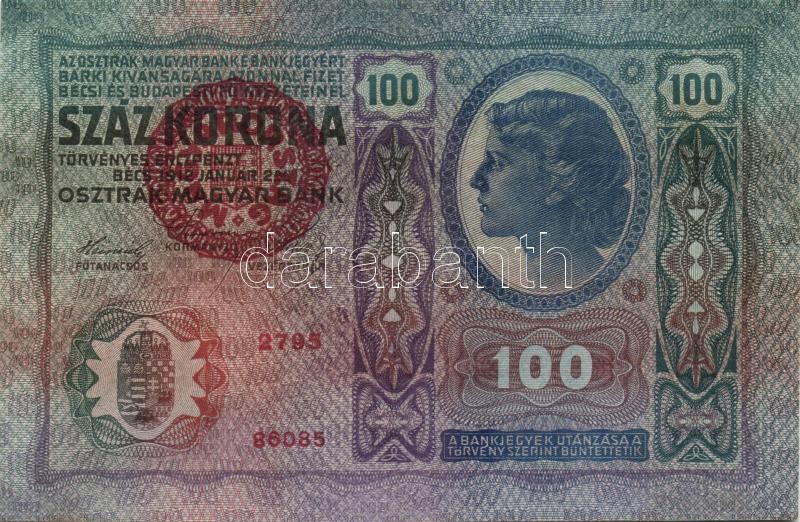1912. 100K piros "Magyarország" körbélyegzővel (2x) egymásutáni sorszá... https://www.darabanth.com/de/114-Fernauktion/114.0/Numismatik/~413/1912-100K-piros-Magyarorszag-korbelyegzovel-2x-egymasutani-sorszammal-TI-I-~II293777