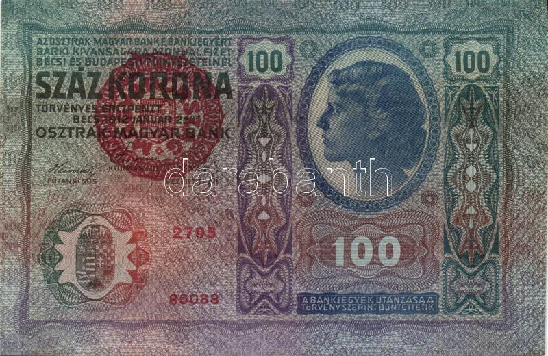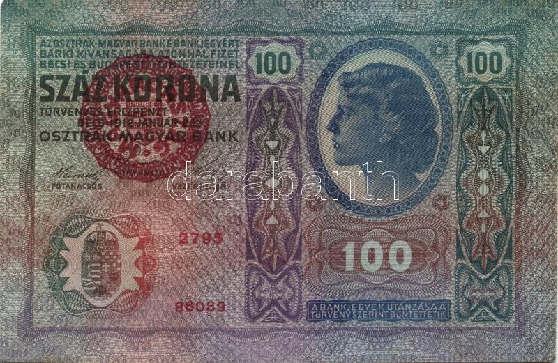 1912. 100K piros "Magyarország" körbélyegzővel (2x) egymásutáni sorszá... https://www.darabanth.com/de/114-Fernauktion/114.0/Numismatik/~413/1912-100K-piros-Magyarorszag-korbelyegzovel-2x-egymasutani-sorszammal-TI-I-~II293781