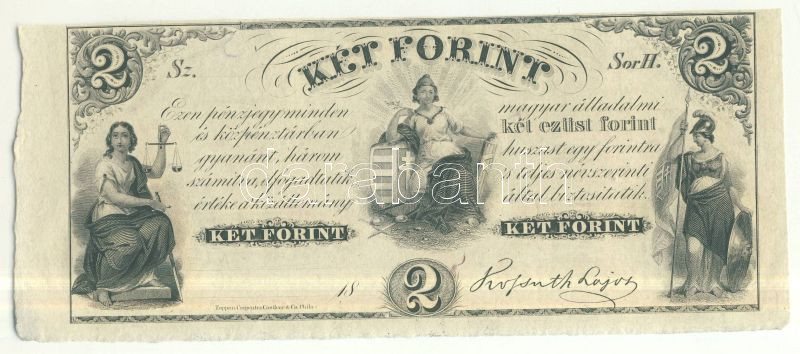 Emigrációs "Kossuth bankó" 18.. 2Ft "Sor H." T:I https://www.darabanth.com/de/114-Fernauktion/114.0/Numismatik/~413/Emigracios-Kossuth-banko-18-2Ft-Sor-H-TI~II252403