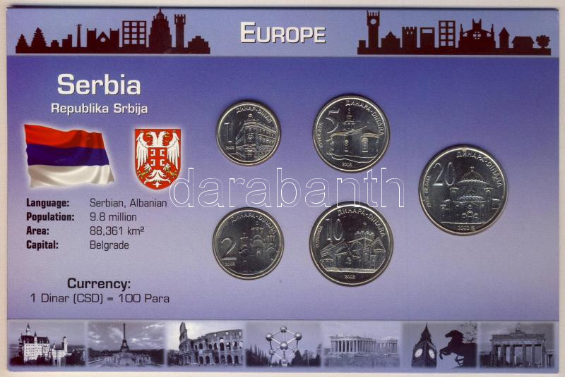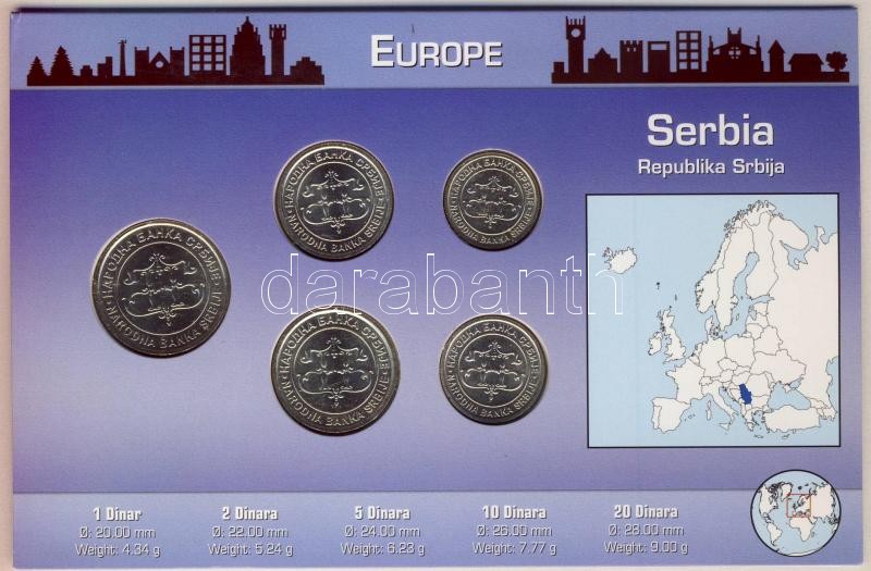 Szerbia 2003. 1D-20D 5klf db, bemutató szettben T:1 https://www.darabanth.com/de/114-Fernauktion/114.0/Numismatik/~422/Szerbia-2003-1D-20D-5klf-db-bemutato-szettben-T1~II292539