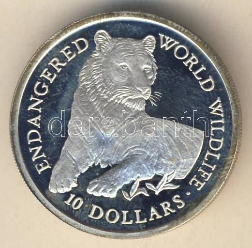 Beschreibung: Cook-szigetek 1990. 10$ Ag "Veszélyeztetett vadállatok" T:PP