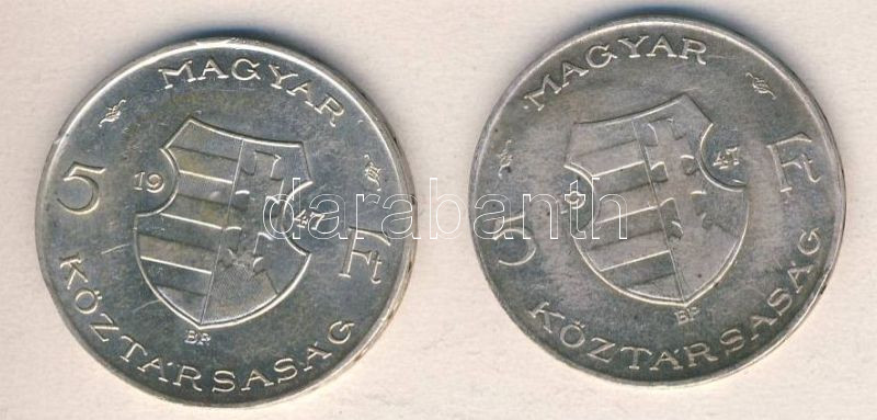 1947. 5Ft Ag "Kossuth" (2x) T:2/3 https://www.darabanth.com/de/114-Fernauktion/114.0/Numismatik/~424/1947-5Ft-Ag-Kossuth-2x-T23~II295269